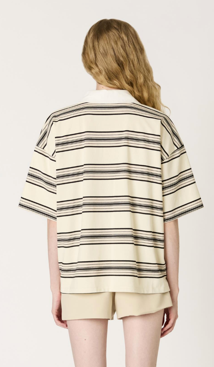A striped polo designed with dropped shoulders and a generous, boxy cut. Clean lines and understated style for everyday wear.