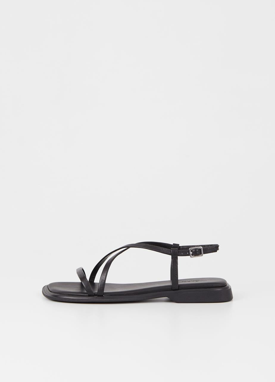 Izzy is a minimalist strap sandal designed for the warmer months. Crafted from black leather, it features elegant crossover straps, a squared toe, and an adjustable buckle-fastened strap. The low 20 mm heels and padded leather insoles ensure subtle lift and lasting comfort.