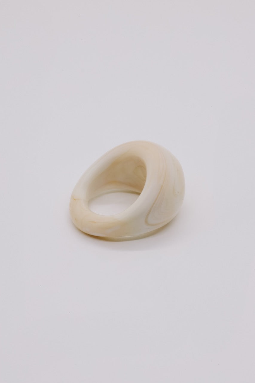 - Glass bubble ring in opaque ivory.