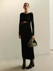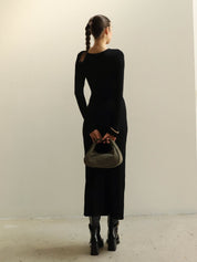 Comfortable yet chic black knit Ruched Stella Dress-- the perfect grab for nights out, holiday dinners or even a base layer for everyday. Wear with a tall boot & statement jewelry. Double lined for extra comfort & seamlessness.