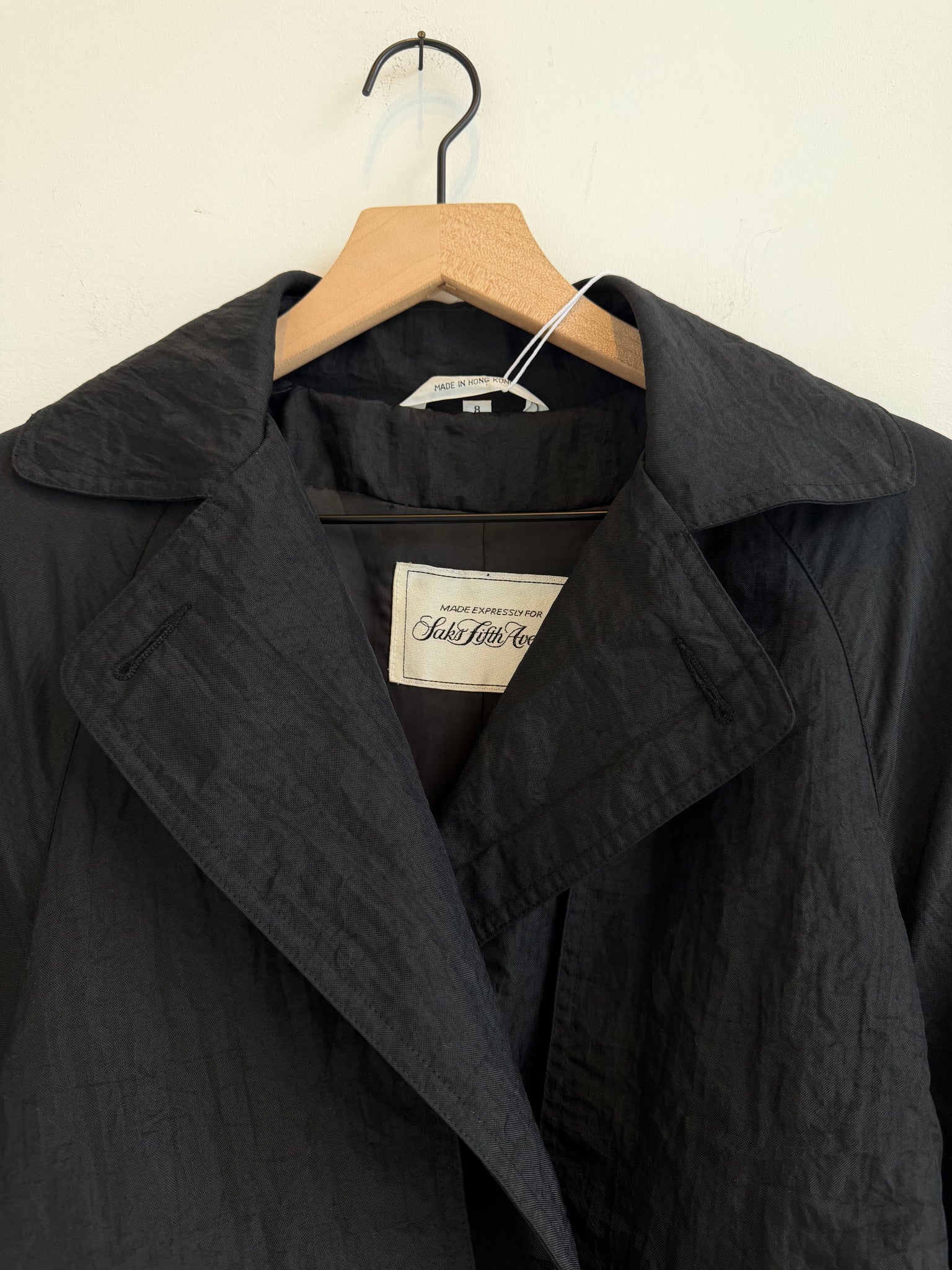 Vintage Saks Fifth Avenue Black Nylon Trench Coat