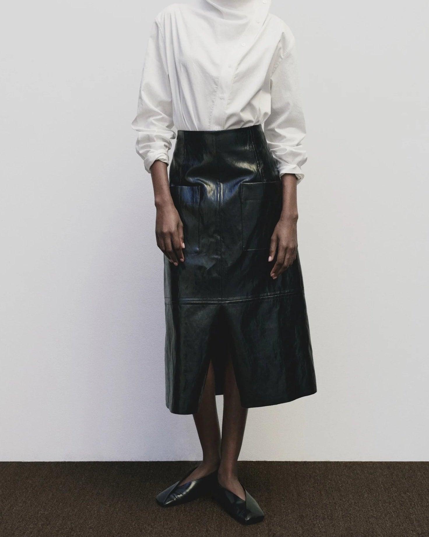 Mijeong Park Black Faux Leather Midi Skirt